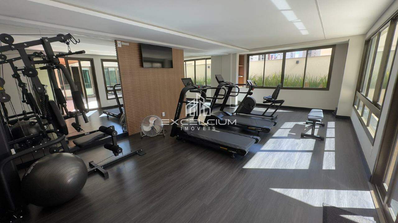 Prédio com fachada moderna, acabamento diferenciado, espaço gourmet montado, e espaço fitness.