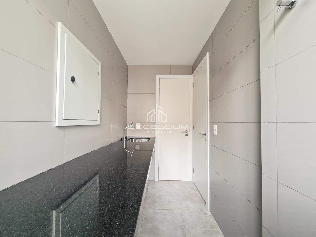 O design de interiores, concebido com inteligência, equilibra a funcionalidade de uma cozinha prática e uma área de serviço independente com a harmonia dos ambientes. A suíte principal é um refúgio privativo, enquanto os outros dois dormitórios oferecem a versatilidade necessária para um moderno home office ou para acomodar convidados. Os acabamentos nobres do lavabo elevam o padrão estético do imóvel, reforçando sua exclusividade.
