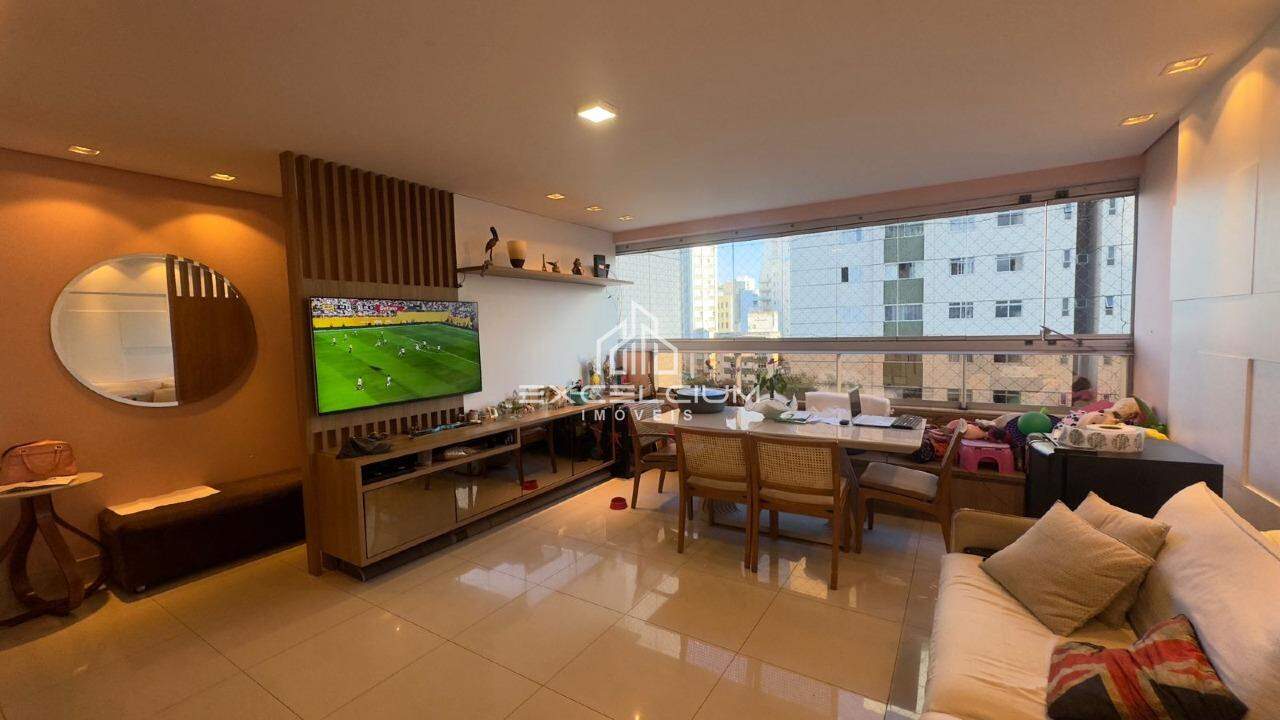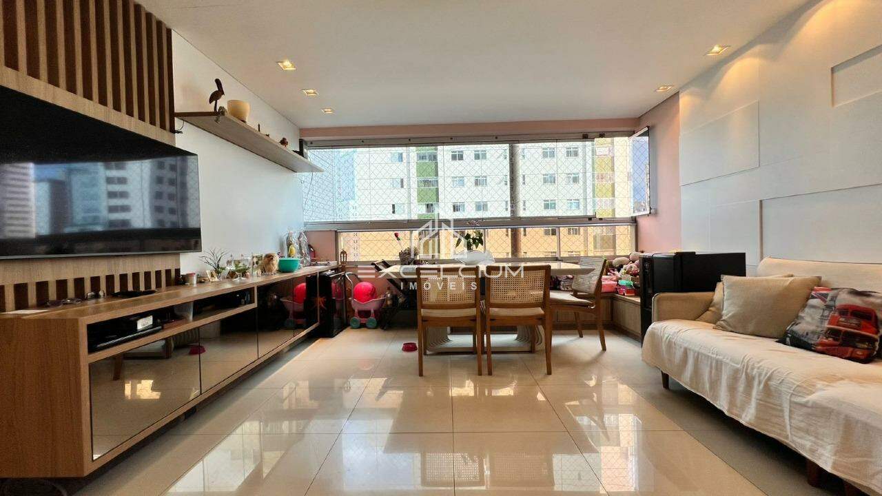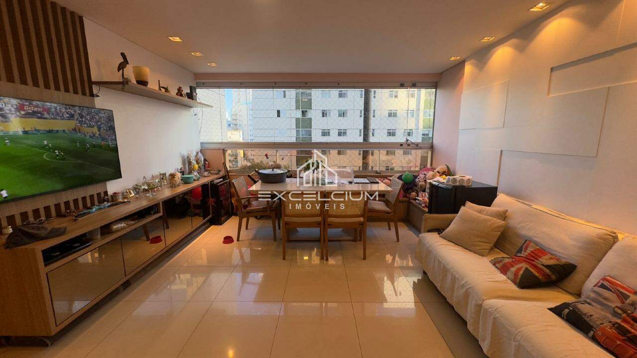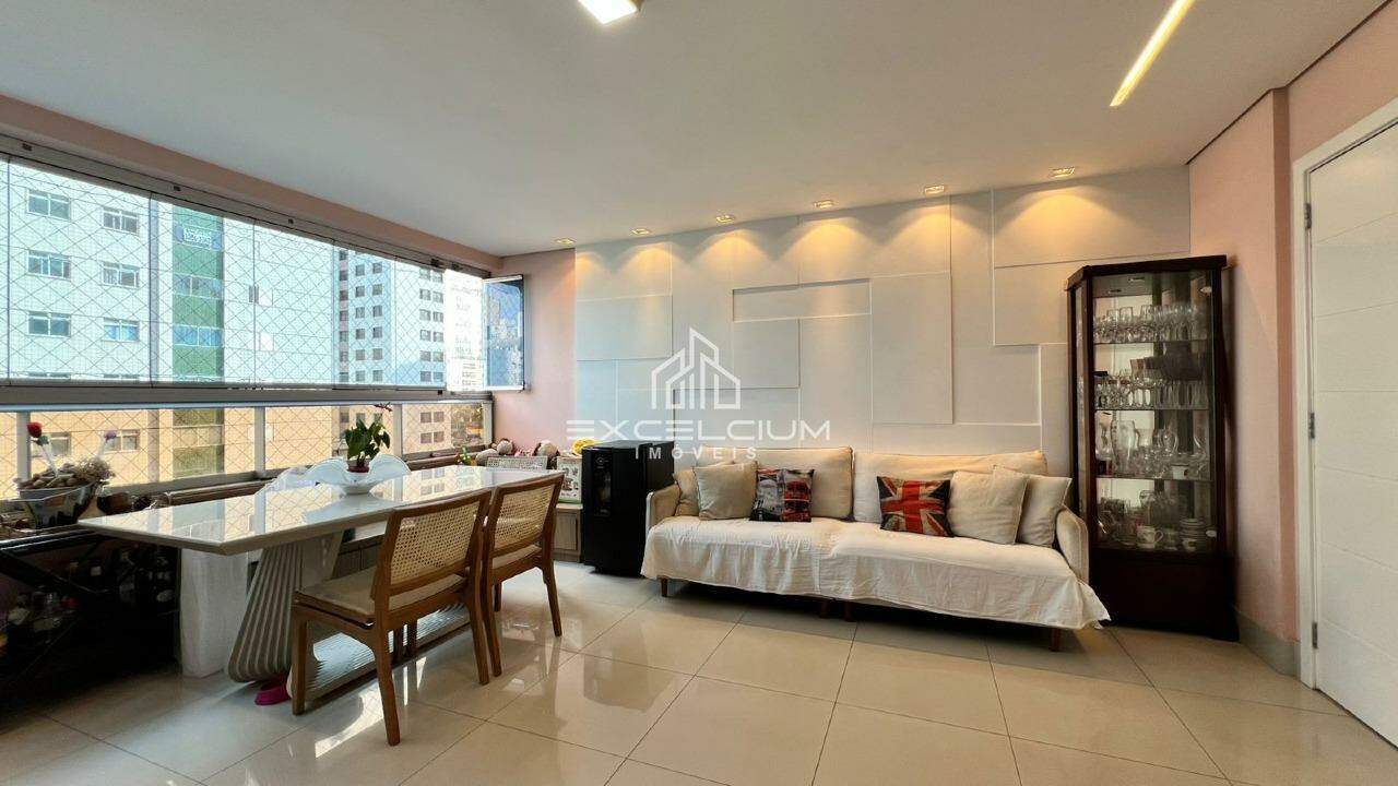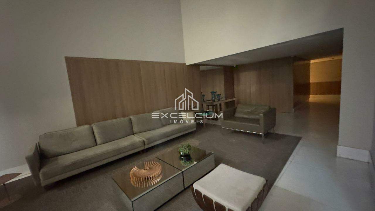 Living: sala ampla integrada à varanda, fechamento em cortina de vidro e vista panorâmica.