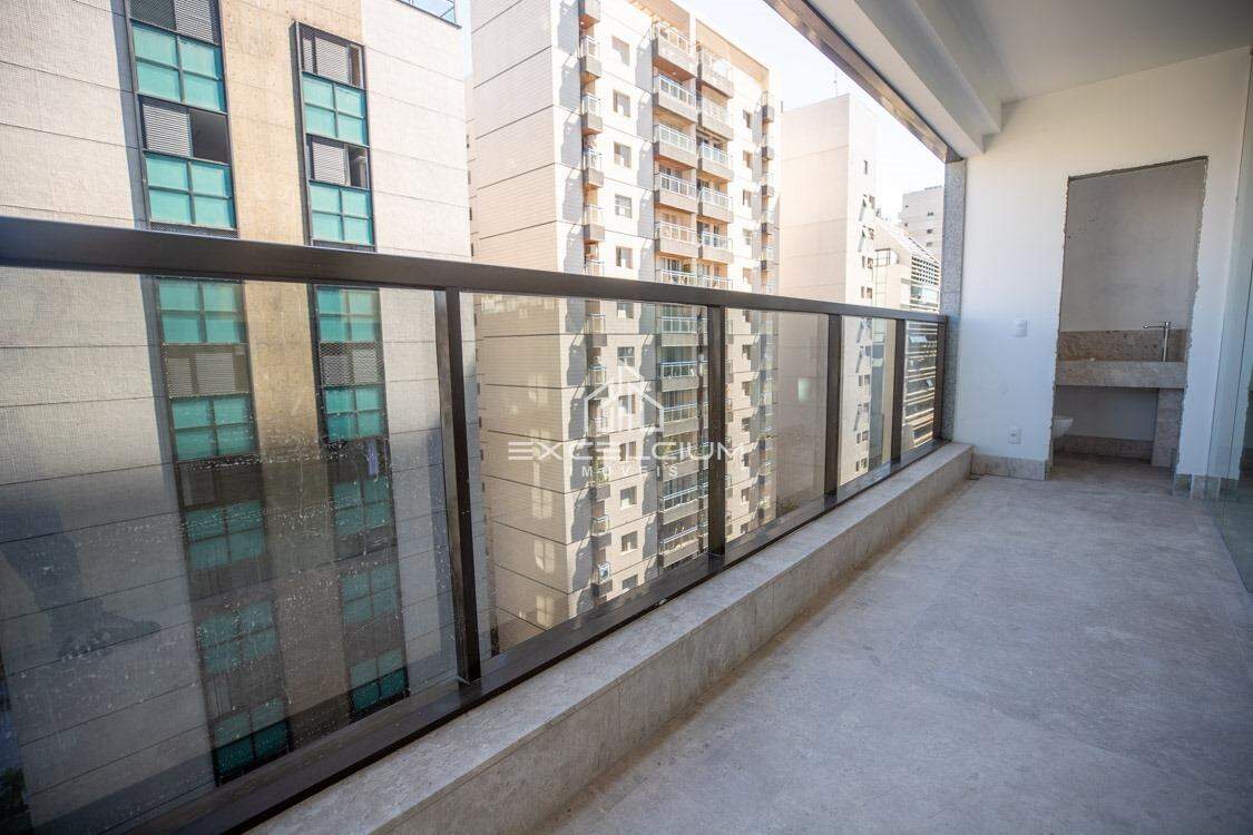 O apartamento, com 130,94 m² de área interna, apresenta salão para dois ambientes com varanda e lavabo, e piso em mármore bege Bahia. São 4 quartos com armários da marcenaria L’Idea — sendo 2 suítes e 2 semi-suítes —, roupeiro no corredor e piso vinílico nas áreas íntimas.