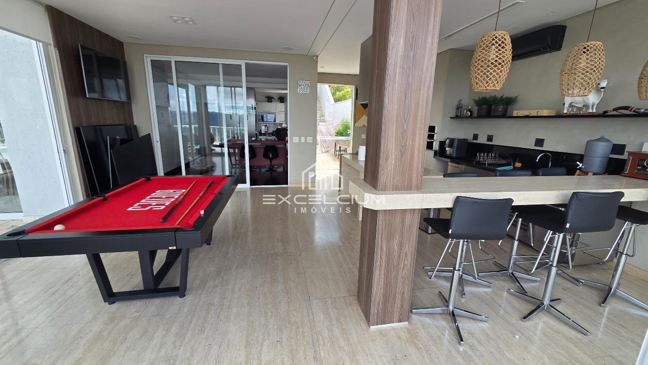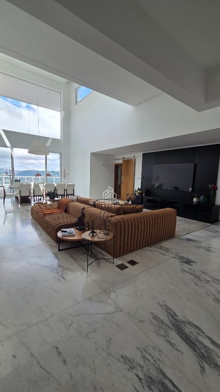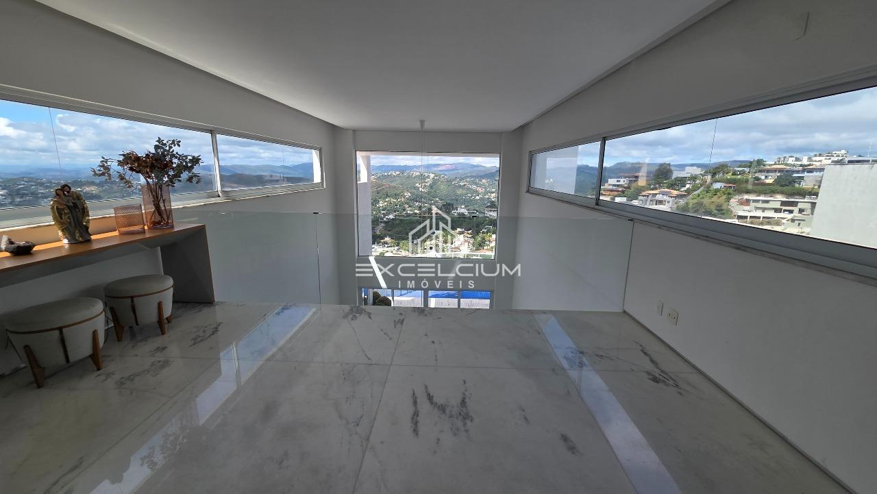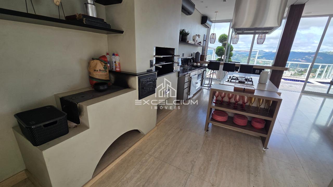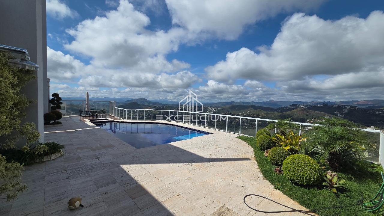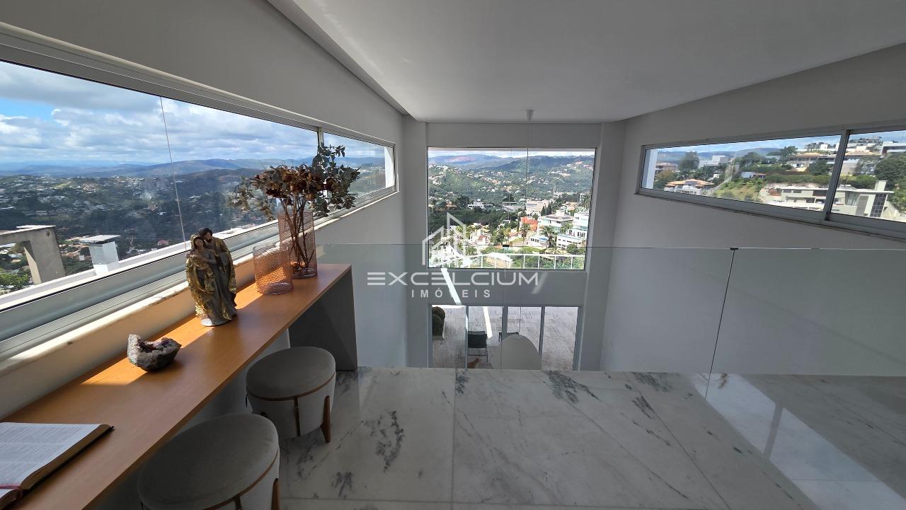 Casa linear com vista aberta para a serra, em composição que privilegia amplitude, integração e conforto. O acesso é feito por escada, mas toda a área social e íntima se desenvolve em um único piso, favorecendo praticidade no dia a dia. A sala principal, com pé-direito duplo, piso em mármore Carrara e lareira, reúne imponência arquitetônica e luminosidade natural, sempre valorizada pela paisagem ao entorno. Na área íntima, são quatro quartos, sendo duas suítes e duas semissuítes, com pisos em taco que acrescentam acolhimento aos ambientes. A suíte master conta com closet generoso e banho com hidromassagem. Lavabo, cozinha com piso e bancada em granito preto, despensa, área de serviço e DCE completam a rotina com funcionalidade.