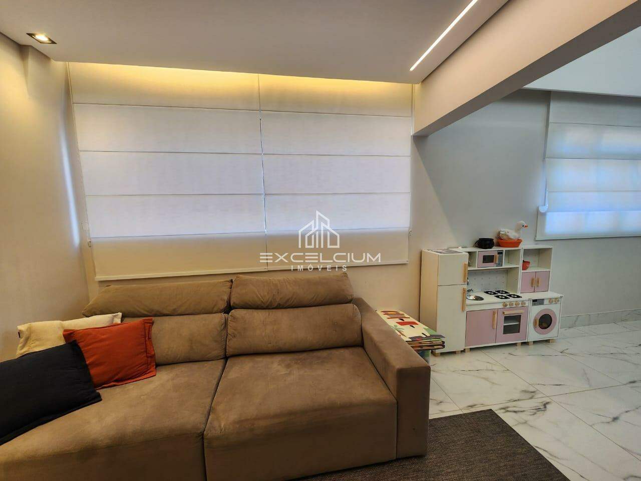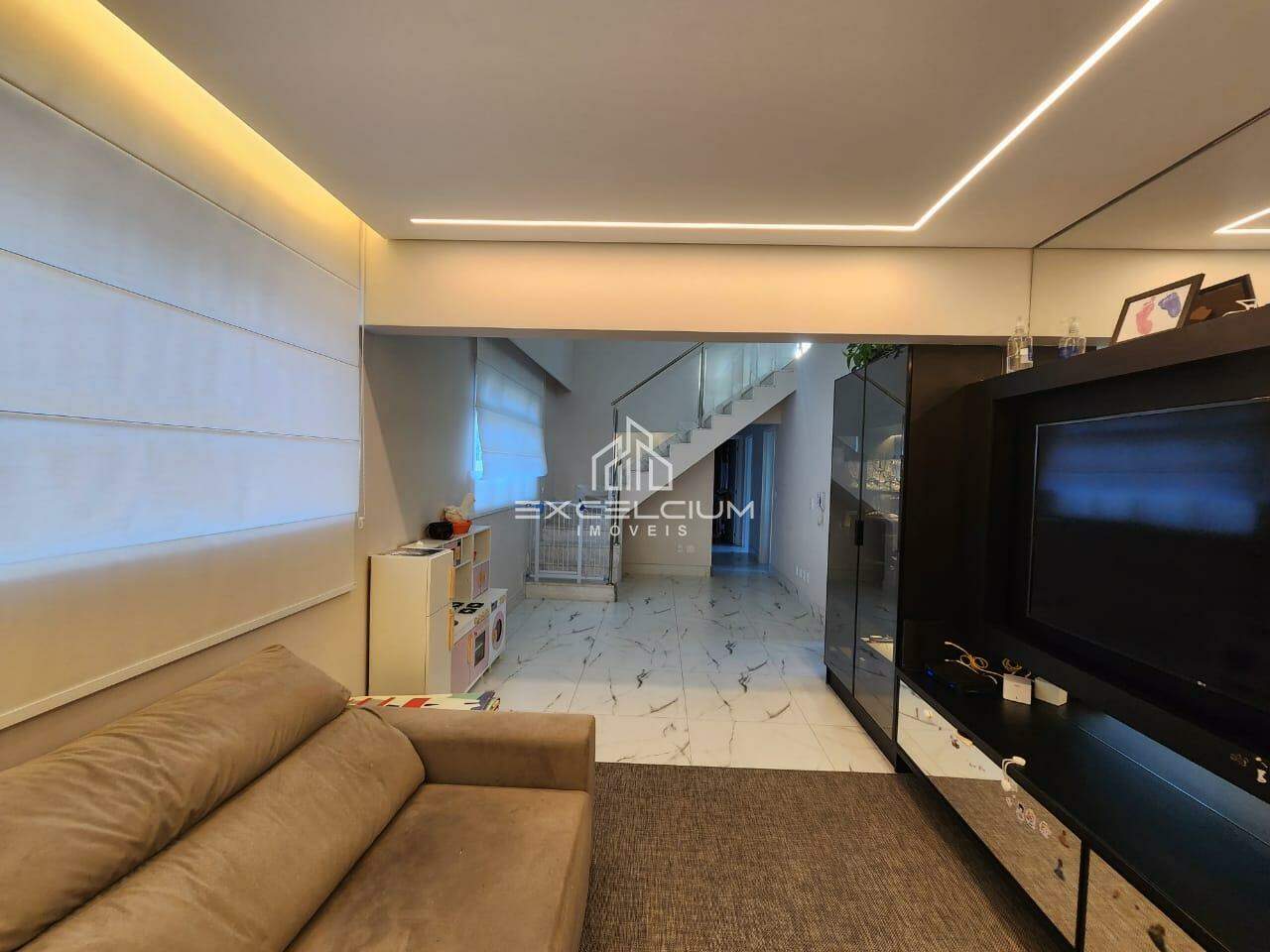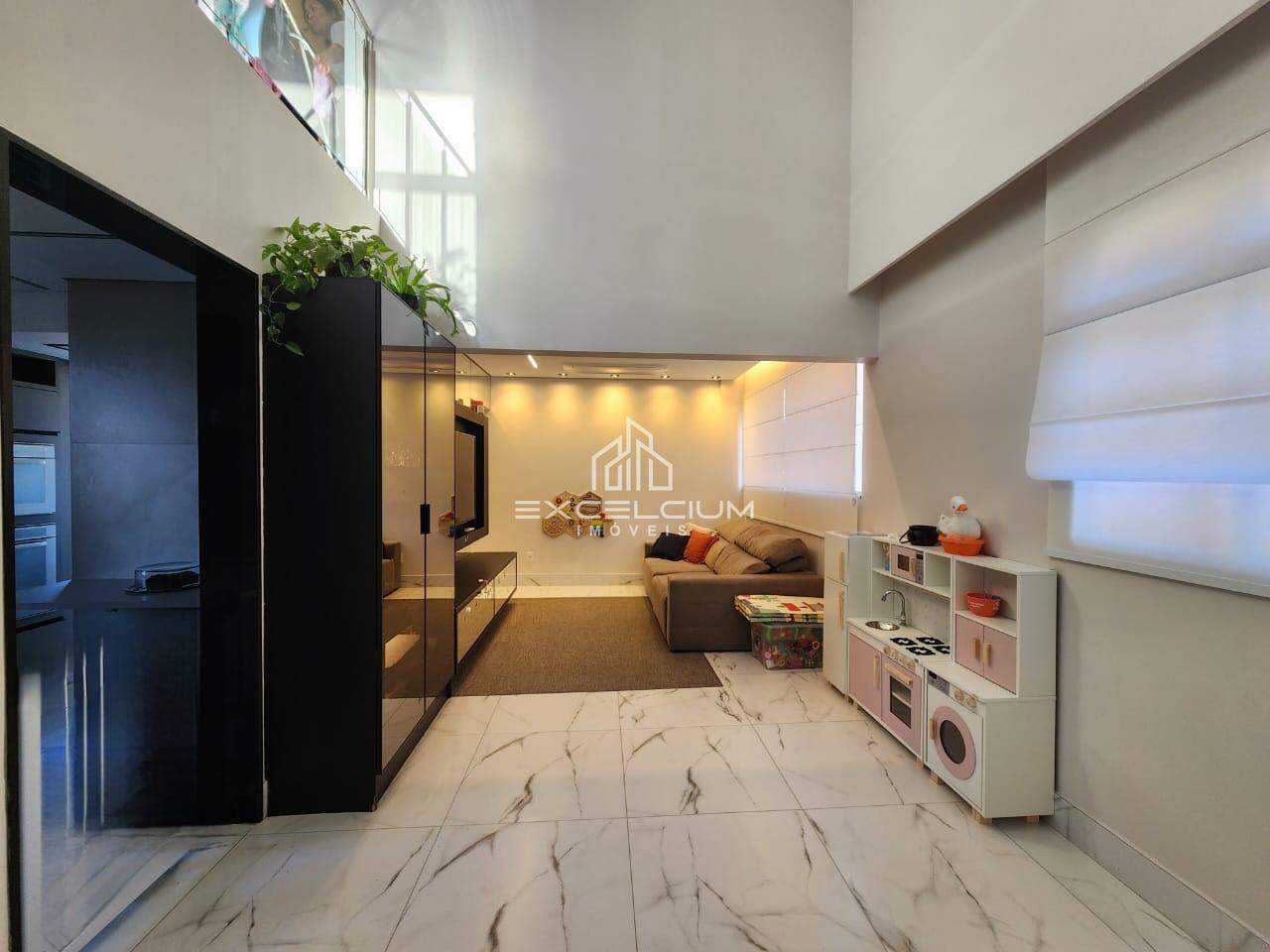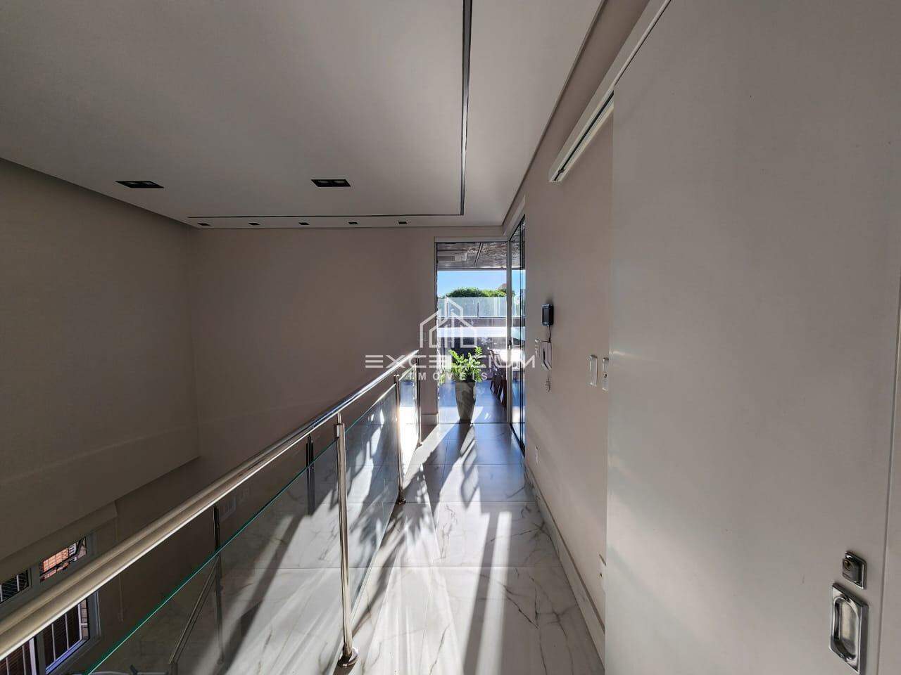 A área íntima é composta por 3 quartos, todos com armários de alto padrão, sendo 1 suíte com painel para TV. Este nível também oferece um espaço dedicado a home office.