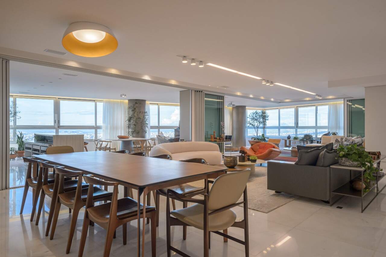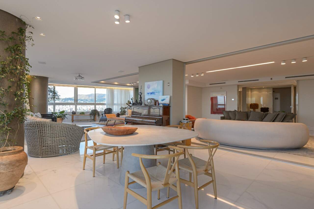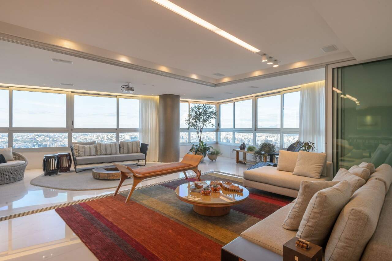 Com 593 m² de área privativa, este apartamento foi totalmente reformado e climatizado, revelando um padrão de excelência em cada detalhe. O amplo living para quatro ambientes, com piso em mármore, integra-se à varanda gourmet, ideal para receber com elegância. Conta ainda com lavabo, home office, corredor com rouparia e um generoso estar íntimo.