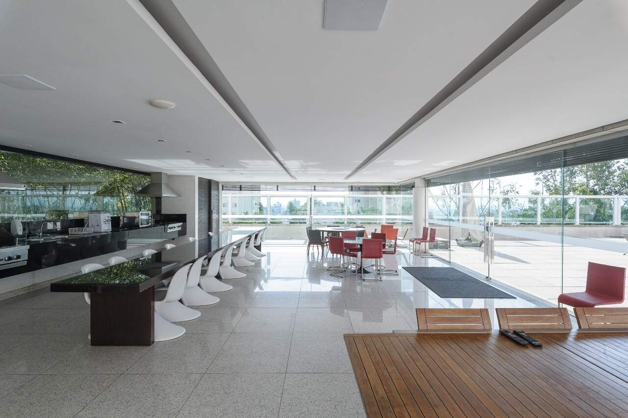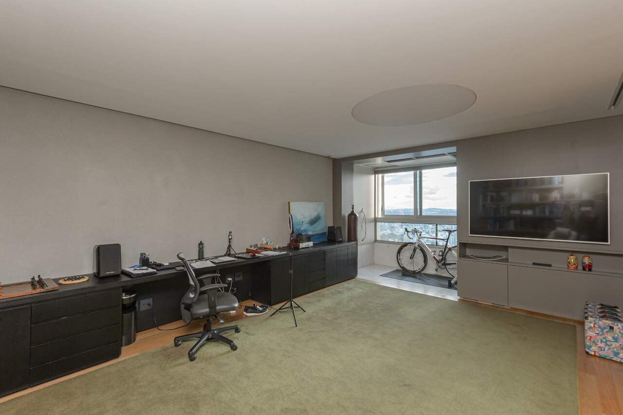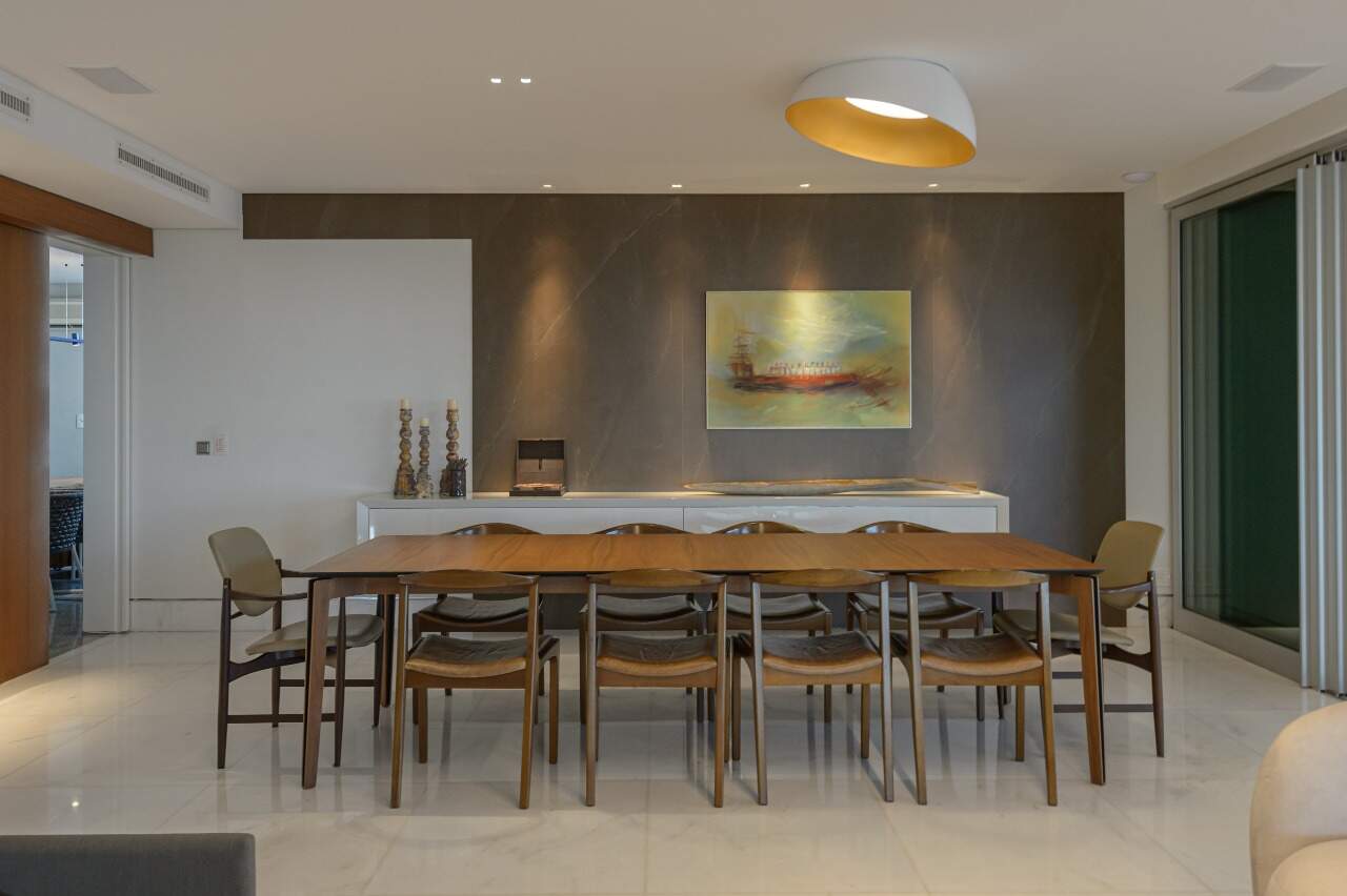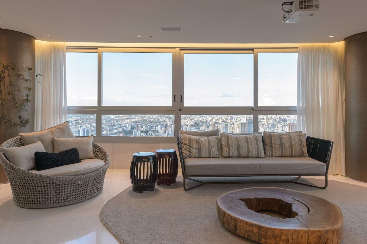 Com 593 m² de área privativa, este apartamento foi totalmente reformado e climatizado, revelando um padrão de excelência em cada detalhe. O amplo living para quatro ambientes, com piso em mármore, integra-se à varanda gourmet, ideal para receber com elegância. Conta ainda com lavabo, home office, corredor com rouparia e um generoso estar íntimo.